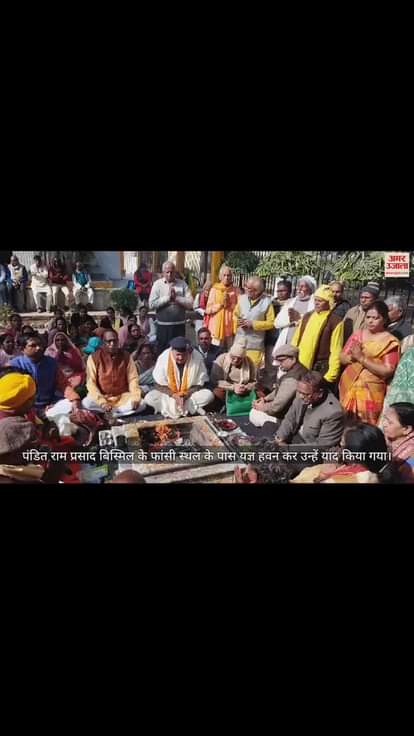 गोरखपुर जिला जेल स्थित पंडित राम प्रसाद बिस्मिल के फांसी स्थल के पास यज्ञ हवन कर उन्हें याद कर नमन करते नगर आर्य समाज साहबगंज बिस्मिल यज्ञशाला लालडिग्गी के लोग।