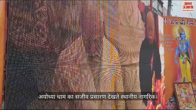 VIDEO : एलईडी पर अयोध्या धाम का सजीव प्रसारण देखते लोग।