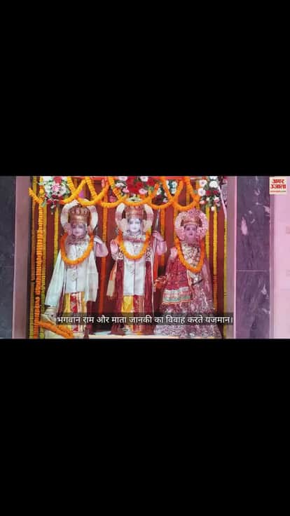 गोरखपुर में गीता वाटिका मंदिर परिसर में हनुमान प्रसाद पोद्दार स्मारक समिति द्वारा आयोजित श्री सीता राम विवाह महोत्सव कार्यक्रम में भगवान राम और माता जानकी का विवाह करते यजमान।