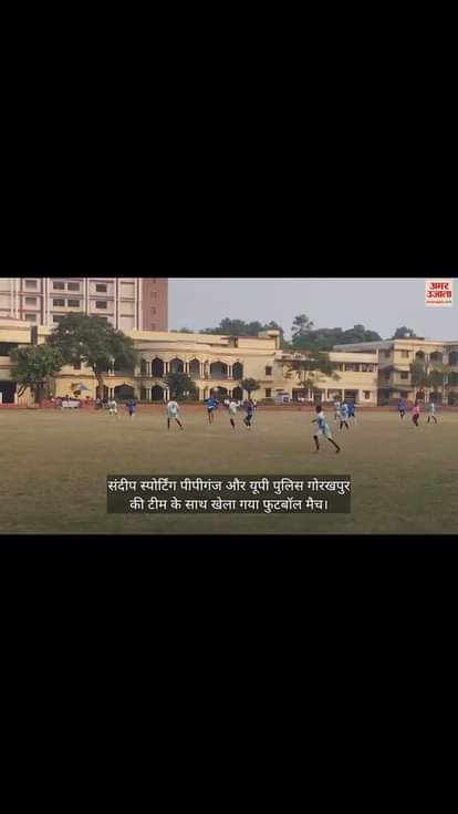 गोरखपुर में सेंट एंड्रयूज कॉलेज के फुटबॉल ग्राउंड में आयोजित जिला स्तरीय आमंत्रण प्राइज मनी फुटबॉल टूर्नामेंट में मंगलवार को संदीप स्पोर्टिंग पीपीगंज और यूपी पुलिस गोरखपुर की टीम के साथ खेला गया फुटबॉल मैच।