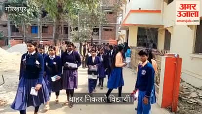यूपी बोर्ड परीक्षा देकर केंद्र से बाहर निकलते विद्यार्थी