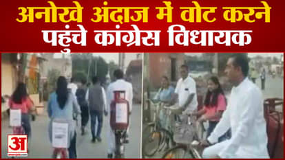 Gujarat Election: Congress MLA came to vote in a unique way, came out of the house with a cylinder on a bicycl