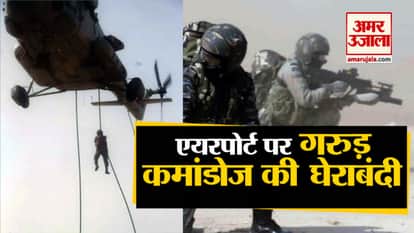 गुजरात के गांधीनगर एयरपोर्ट पर सेना के एक हेलीकॉप्टर से गरुड़ कमांडो उतरे। कमांडों यूनिट ने उतरते ही एयरपोर्ट के रनवे पर मोर्चा संभाल लिया। इस पूरी कार्रवाई को देखने के लिए मौके पर लोगों की भारी भीड़ लग गई। देखिए आखिर क्या वजह थी इस कार्रवाई के पीछे।