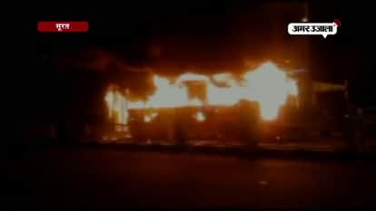 patidar youths protest against bharatiya janata yuva morcha sammelan torch two buses in Surat