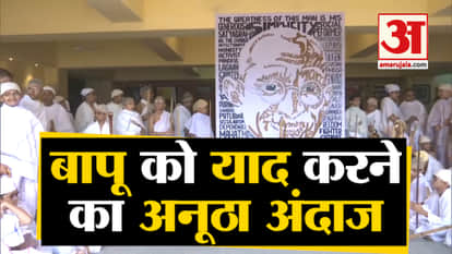 महात्मा गांधी की 150 वीं जयंती पर अहमदाबाद के छात्रों का कमाल, 150 शब्दों के साथ बनाई बापू की तस्वीर