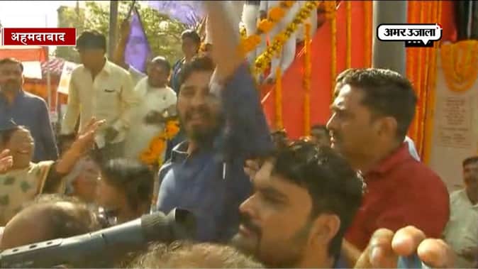 अहमदाबाद में बाबा साहब अंबेडकर के जन्मदिन के मौके पर आयोजित श्रद्धांजलि समारोह के दौरान दलित नेता जिग्नेश मेवाणी के समर्थकों ने खूब हंगामा किया। दरअसल बीजेपी के सांसद बाबा साहब की मूर्ति को माला पहना रहे थे। उसी वक्त पूरा हंगामा हुआ।