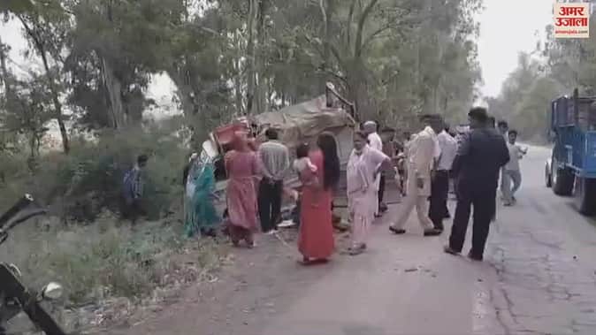VIDEO : त्रिलोकपुर से माथा टेककर लौट रहे भक्तों की टाटा ऐस पेड़ से टकराई, 18 घायल