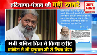 मंत्री अनिल विज ने किया ट्वीट,कांग्रेस ने श्री हनुमान जी से लिया पंगा समेत हरियाणा की बड़ी खबरें