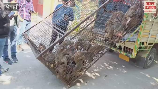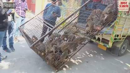 VIDEO : भिवानी में 47 उत्पाती बंदर पिंजरे के अंदर, कराया मेडिकल परीक्षण