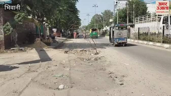भिवानी में लीकेज की वजह से तोड़ी सड़क, वाहनों को हादसों से बचाने के लिए लगाई गई है झाड़ियां