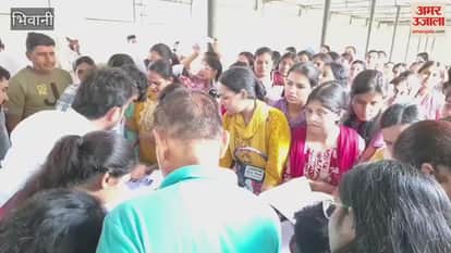 भिवानी में एचटेट परीक्षा में बारिश के दौरान बॉयोमैट्रिक सिस्टम हुआ ठप, डेढ़ घंटे लाइन में लगे रहे परीक्षार्थी