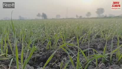 VIDEO : भिवानी में शीत लहर और तापमान गिरने से जमने लगा खेतों में पाला