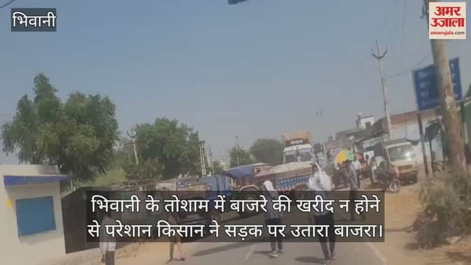 भिवानी के तोशाम में बाजरे की खरीद न होने से परेशान किसान ने सड़क पर उतारा बाजरा