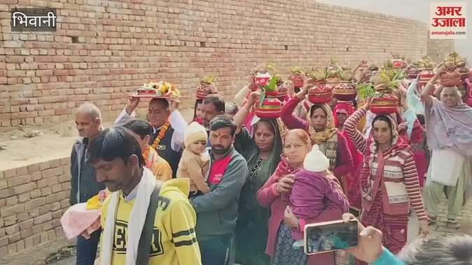 VIDEO : भिवानी में श्रीमद भागवत कथा के शुभारंभ पर बलियाली में निकली कलश यात्रा