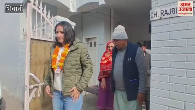 भिवानी: नौवीं एलीट राष्ट्रीय मुक्केबाजी प्रतियोगिता में स्वर्ण पदक विजेता पूजा रानी का घर पहुंचने पर हुआ स्वागत