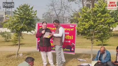 भिवानी: सर्व कर्मचारी संघ ने 12 फरवरी को राष्ट्रव्यापी हड़ताल को लेकर प्रदर्शन कर सौंपा ज्ञापन