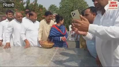 गोलागढ़ में दिवंगत पूर्व मुख्यमंत्री बंसीलाल व दिवंगत पूर्व कृषि मंत्री सुरेंद्र सिंह की समाधि स्थल पर राज्यसभा सांसद किरण चौधरी और महिला बाल विकास मंत्री, सिंचाई मंत्री श्रुति चौधरी ने पुष्प अर्पित किए। कैबिनेट मंत्री बनने के बाद श्रुति चौधरी मां किरण चौधरी के साथ सीधे समाधि स्थल पर पहुंची। यहां कार्यकर्ताओं को संबोधित करते समय दोनों मां-बेटी भावुक हो गईं।