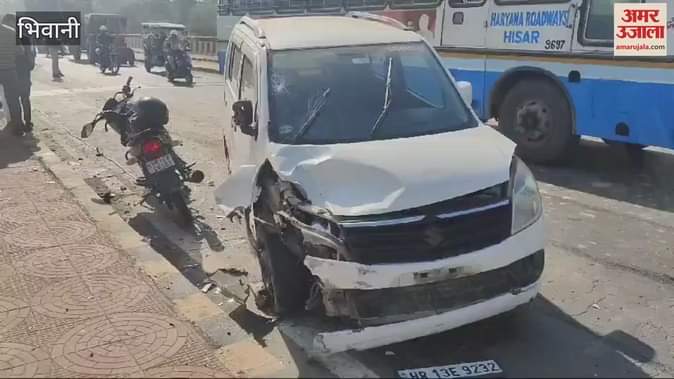 VIDEO : भिवानी में हांसी मार्ग पर बने पुल पर दो गाड़ियों व बाइक में टक्कर, बुजुर्ग व्यक्ति गंभीर रूप से घायल