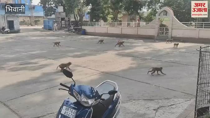 VIDEO : भिवानी में छत पर कपड़े सुखाने गई दो लड़कियों को बंदरों ने काटा