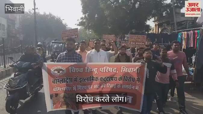 VIDEO : बांग्लादेश में इस्कॉन संत की गिरफ्तारी के खिलाफ भिवानी में विश्व हिंदू परिषद ने किया प्रदर्शन