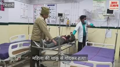 भिवानी शहर के हनुमान गेट क्षेत्र में दिनदहाड़े घर के अंदर चाकू से गोदकर एक महिला की निर्मम हत्या कर दी गई। इसके बाद हत्यारे ने खुदकुशी का भी प्रयास किया। वारदात के बाद मौके पर मौजूद लोगों ने आरोपी को पकड़ लिया और पुलिस बुलाई। इसके बाद घायल को पुलिस उपचार के लिए जिला नागरिक अस्पताल लेकर पहुंची। जहां से चिकित्सकों ने उसे रोहतक पीजीआई रेफर कर दिया।