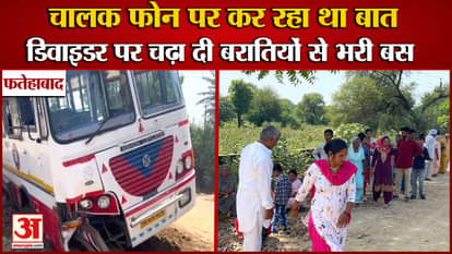 फतेहाबाद में भूना रोड पर बुधवार दोपहर को भूना से दरियापुर बरात में जा रही बरातियों से भरी एक निजी बस चालक की लापरवाही से डिवाइडर पर चढ़ गई। रोड टूटा होने के बावजूद चालक मोबाइल पर बात कर रहा था
