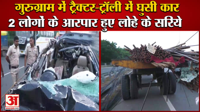 गुरुग्राम में ट्रैक्टर-ट्रॉली में घुसी कार,2 लोगों के आरपार हुए लोहे के सरिये