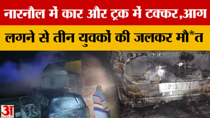 नारनौल में भीषण सड़क हादसा, ट्रक-कार टक्कर में तीन जिंदा जले