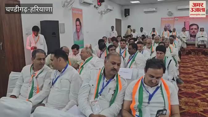 हरियाणा कांग्रेस के संगठन विस्तार के लिए केंद्रीय पर्यवेक्षकों के साथ जिलों में सर्वे के लिए नियुक्त हरियाणा कांग्रेस के नेता मौजूद। इनके साथ राहुल गांधी दूसरी पाली में बैठक करेंगे।