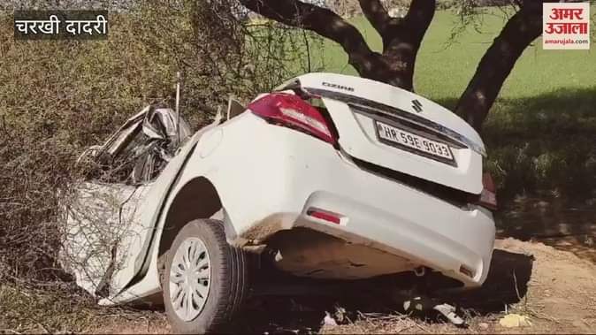 VIDEO : दादरी में पेड़ से टकराई कार, एक की मौत और चार घायल