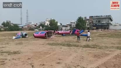 चरखी-दादरी में दहन के लिए लाए गए रावण मेघनाथ और कुंभकरण के पुतले