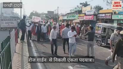 लौह पुरुष सरदार वल्लभभाई पटेल की 150वीं जयंती के उपलक्ष्य में माई भारत युवा कार्यक्रम एवं खेल मंत्रालय, भारत सरकार तथा जिला प्रशासन के तत्वावधान में चरखी दादरी के रोज पार्क से एकता पदयात्रा निकाली गई। कार्यक्रम में भिवानी–महेंद्रगढ़ लोकसभा सांसद चौधरी धर्मवीर सिंह, बाढ़डा विधायक उमेद पातुवास, उपायुक्त डॉ. मुनीश नागपाल, भाजपा जिलाध्यक्ष सुनील इंजीनियर और नगर परिषद चेयरमेन बक्सी राम सैनी ने अगुवाई की।