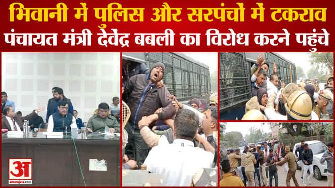 भिवानी में पुलिस और सरपंचों में टकराव,पंचायत मंत्री देवेंद्र बबली का विरोध करने पहुंचे थे