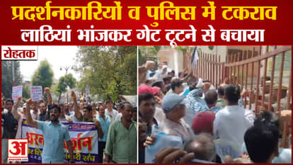 रोहतक: प्रदर्शनकारियों व पुलिस में टकराव,लाठियां भांजकर गेट टूटने से बचाया