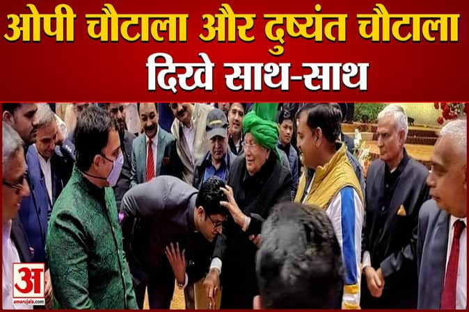 चौटाला परिवार में सुलह के संकेत, डिप्टी सीएम दुष्यंत चौटाला ने छुए दादा ओपी चौटाला के पांव