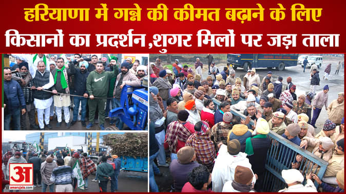 हरियाणा में गन्ने की कीमत बढ़ाने के लिए किसानों का प्रदर्शन,शुगर मिलों पर जड़ा ताला