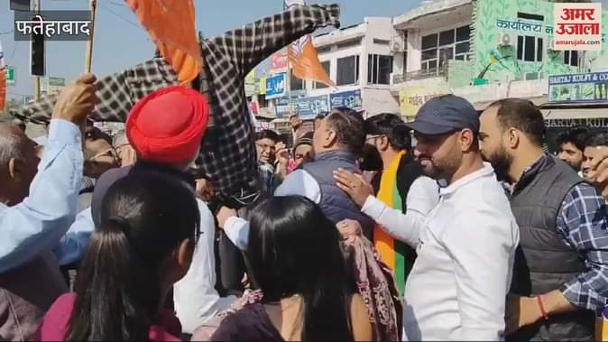 VIDEO : फतेहाबाद में भाजपा कार्यकर्ताओं ने फूंका अरविंद केजरीवाल का पुतला