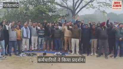 फतेहाबाद: हरियाणा स्टेट इलेक्ट्रिसिटी बोर्ड वर्कर्स यूनियन ने अपनी मांगों को लेकर किया प्रदर्शन