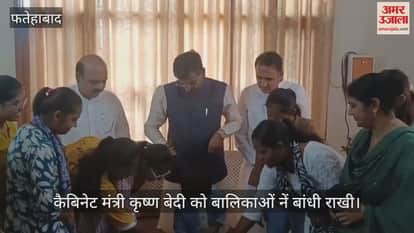 फतेहाबाद: कैबिनेट मंत्री कृष्ण बेदी को बालिकाओं नें बांधी राखी