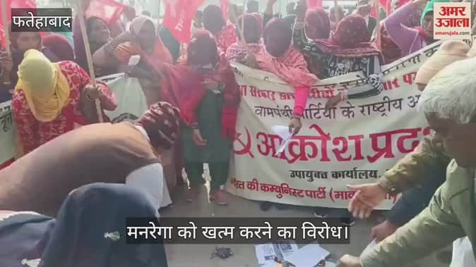 फतेहाबाद: मनरेगा को खत्म करने का विरोध, डीसी दफ्तर पर प्रदर्शन कर जलाई गई नए कानून प्रतियां