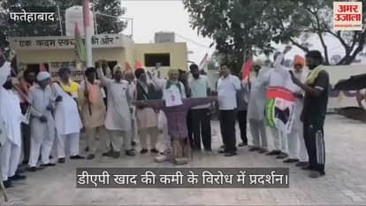फतेहाबाद: किसान संघर्ष समिति ने डीएपी खाद की कमी के विरोध में पीएम और सीएम का जलाया पुतला