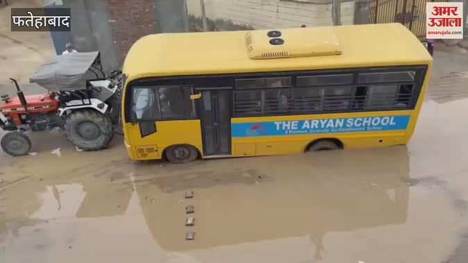 फतेहाबाद में सीवर लाइन लीकेज की वजह से हुए गड्ढे में फंसी स्कूल बस, ट्रैक्टर की सहायता से निकाला बाहर