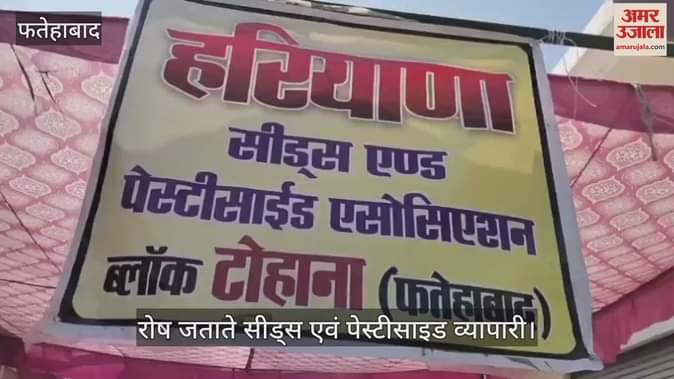 VIDEO : टोहाना में सरकार के खिलाफ गरजे सीड्स एवं पेस्टीसाइड व्यापारी
