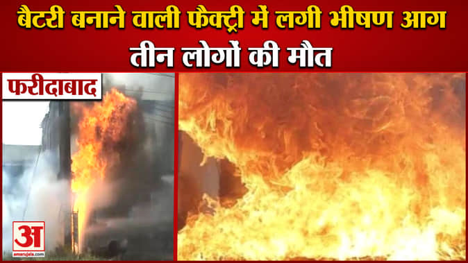फरीदाबाद में एक बैटरी बनाने वाली फैक्ट्री में शनिवार को भीषण आग लग गई। हादसे में तीन लोगों की मौत हो गई। आग लगने की सूचना मिलते ही दमकल विभाग की गाड़ियां मौके पर आग बुझाने के लिए पहुंची।