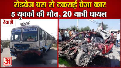 रेवाड़ी:रोडवेज बस से टकराई ब्रेजा कार,हादसे में 5 युवकों की मौत,कई यात्री घायल