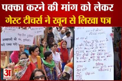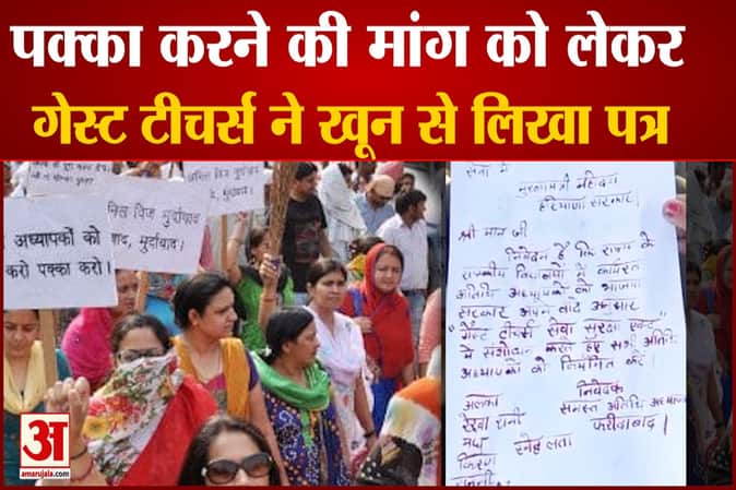 फरीदाबाद के गेस्ट टीचर्स परिवहन मंत्री मूलचंद शर्मा के सेक्टर-8 कार्यालय पर पहुंचे। इस दौरान महिला अध्यापकों ने अपने खून से ज्ञापन लिखा और सीएम द्वारा किए गए झूठे वादे के खिलाफ नारेबाजी भी की।
