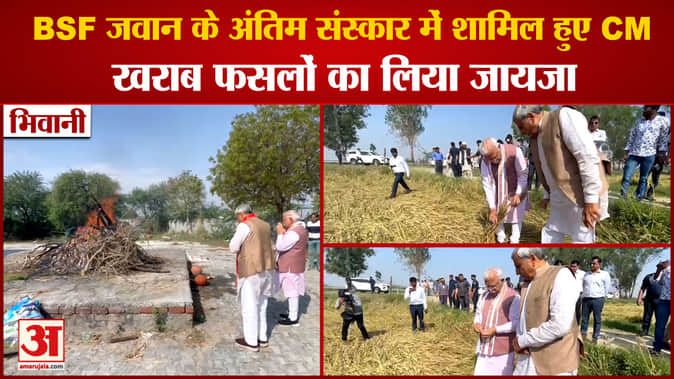 भिवानी:BSF जवान के अंतिम संस्कार में शामिल हुए सीएम मनोहर लाल,खराब फसलों का जायजा भी लिया