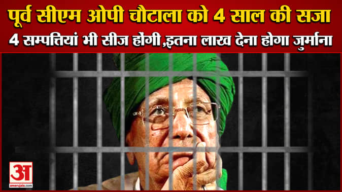 हरियाणा के पूर्व मुख्यमंत्री ओम प्रकाश चौटाला को आय से अधिक संपत्ति के मामले में अदालत ने 4 साल की सजा सुनाई। साथ ही 50 लाख रुपये का जुर्माना लगाया। कोर्ट में बचाव पक्ष की दिव्यांगता के आधार पर सहानुभति रखने की दलील को स्वीकार नहीं किया।वहीं पूर्व सीएम की हेली रोड, पंचकूला, गुरुग्राम और असोला की प्रॉपर्टी भी सीज की जाएंगी।