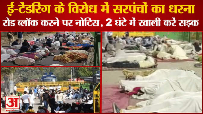 ई-टेंडरिंग के विरोध में सरपंचों का धरना,रोड ब्लॉक करने पर नोटिस, 2 घंटे में खाली करें सड़क