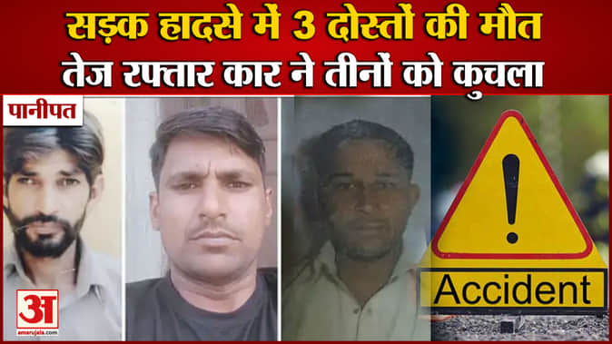पानीपत:सड़क हादसे में 3 दोस्तों की मौत,तेज रफ्तार कार ने तीनों को कुचला